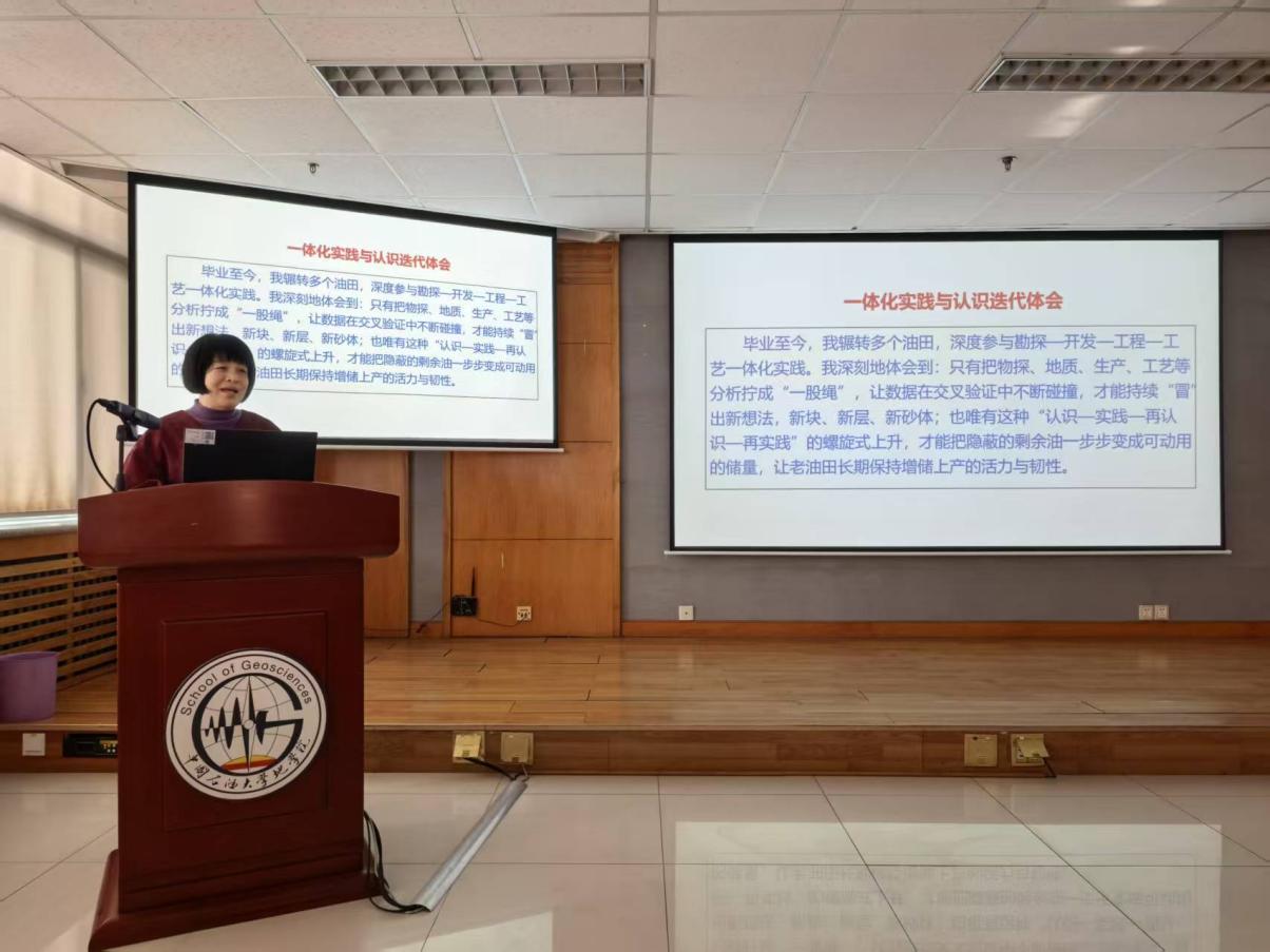 2025 年 12 月 10 日,地学讲坛第 421 讲在工科 C757学术报告厅顺利举行。特邀李雪教授级高级工程师作《地质再认识:老油田隐蔽油藏→可动储量》的专题学术报告,60余师生、科研人员齐聚现场,共同参与学术交流。报告由必赢bwin线路检测中心邱隆伟教授、张立强教授共同主持。