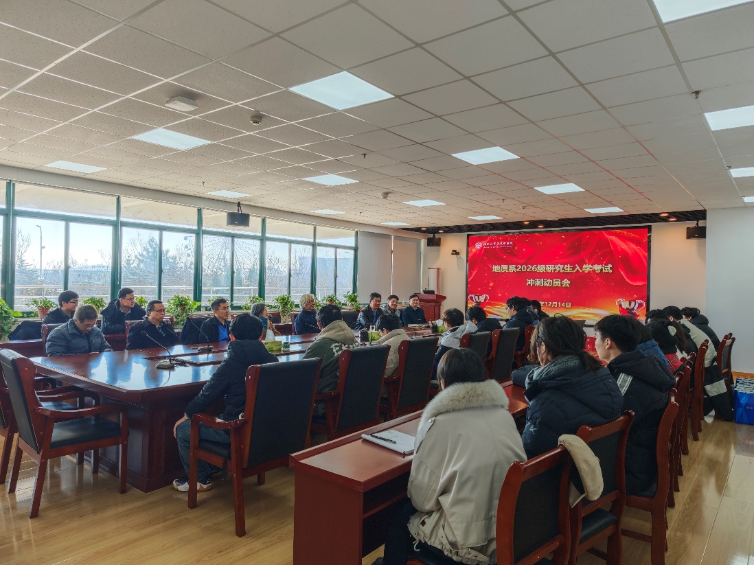为助力学子全力冲刺,鼓舞斗志、缓解压力,12月14日,地质系在学院C271会议室召开“温情助研,冲刺护航”考研冲刺动员会。教师代表与辅导员共同参加,为紧张备战2026年考研的大四学子送上暖心礼包与真诚祝福,在凛冽冬日里传递出浓浓的关怀与支持。