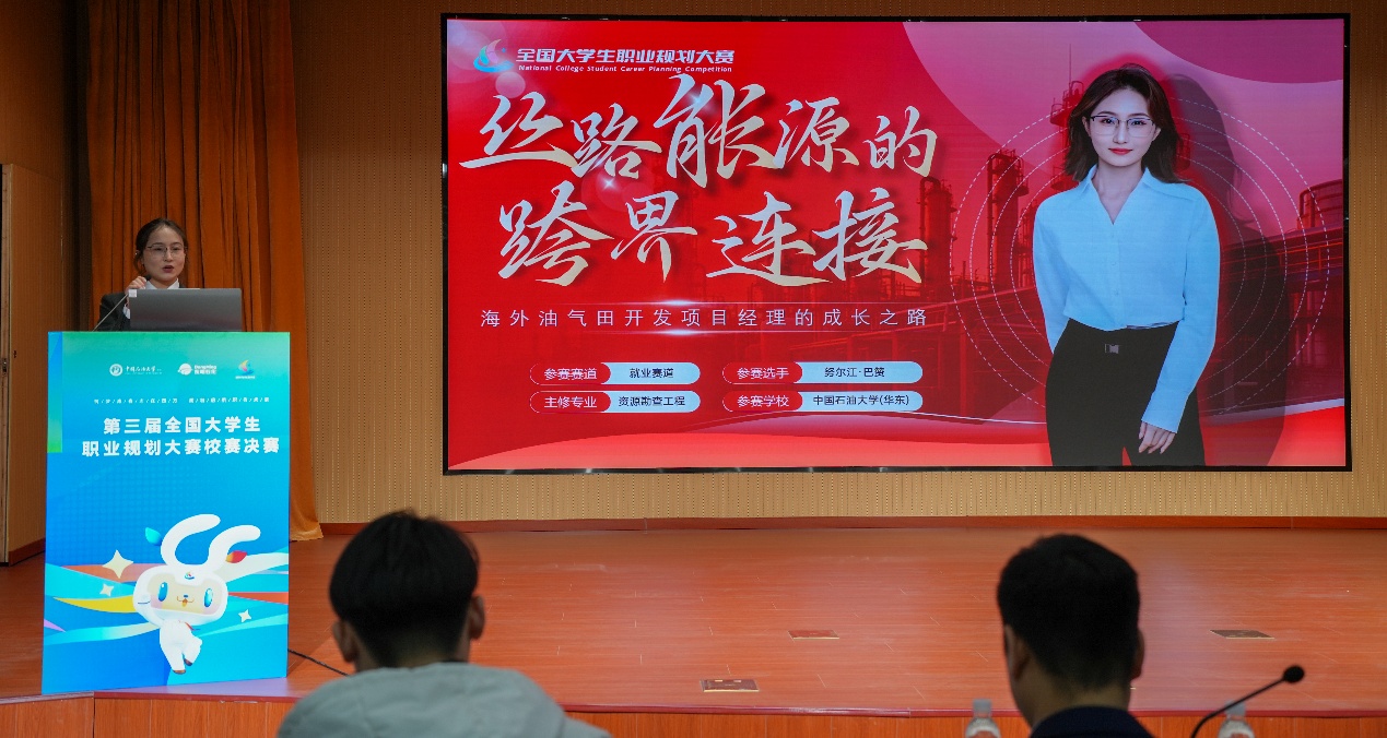 本次大赛自启动以来,学院充分动员,学生积极参与,共有1144名同学报名参加院部初赛,经过院级初赛、校级复赛的层层选拔,选手们在决赛中通过现场演讲、PPT展示等多种形式,全面阐述职业目标、成长路径与实践经历。本次比赛中,必赢bwin线路检测中心参赛学子紧密结合专业与国家能源战略,展现了清晰的成长蓝图与坚定的报国志向。2022级生努尔江立志做“丝路能源的跨界连接者”,凭借与能源行业需求紧密结合的职业规划,在就业赛道脱颖而出,荣获就业赛道银奖;2024级本科生于慧茜则以“为国寻油”为志向,结合地学专业学习、科研实践与综合素质全面成长,荣获成长赛道铜奖,展现出清晰的发展规划与能源报国的责任担当。