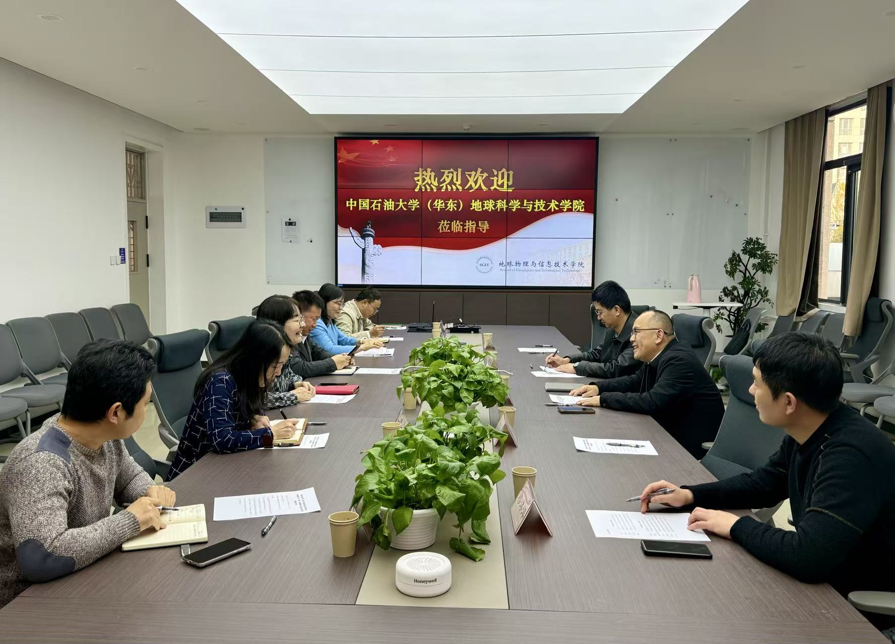 在中国地质大学(北京)地球物理与信息技术学院,党委书记吴海英代表学院对宗兆云一行表示热烈欢迎,并指出,两院学科关联紧密、合作基础深厚,希望通过此次交流进一步凝聚共识,推动资源共享与协同创新,共同服务国家战略与行业发展需求。宗兆云对学院的热情接待表示感谢。他赞同吴海英书记对两院合作基础与前景的判断,并表示此次走访旨在深入对接、共谋发展,希望以此次交流为契机,与地球物理与信息技术学院建立更紧密的常态化沟通机制,未来能在高水平科研项目联合攻关、前沿技术共享与应用、创新型人才培养等方面开展实质性合作,共同应对挑战,提升学科整体实力与贡献度。随后双方分别介绍了学院的历史沿革、专业设置、师资结构、人才培养、科研成果等方面的概况和突破性成果,并交流了学院学科“十五五”规划设想。