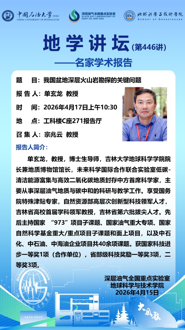 【地学讲坛第446讲】关于单玄龙教授《我国盆地深层火山岩勘探的关键问题》学术报告的通知