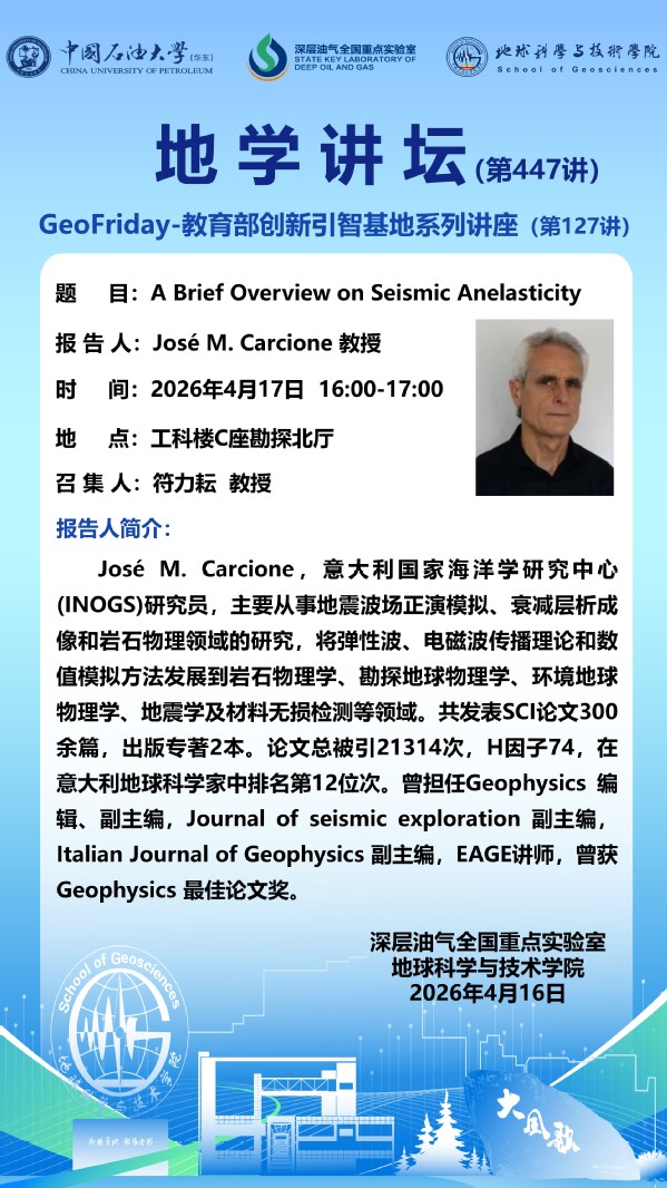 【地学讲坛第447讲】关于José M. Carcione 教授《A Brief Overview on Seismic Anelasticity》学术报告的通知